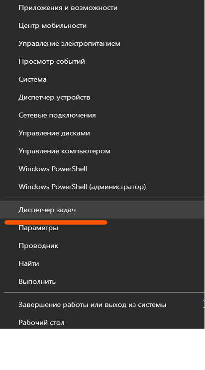 - Щелкните правой кнопкой мыши по кнопке Пуск и выберите Диспетчер задач.