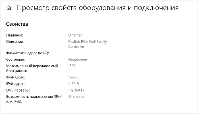 - На открывшемся экране вы увидите информацию о сетевом подключении.