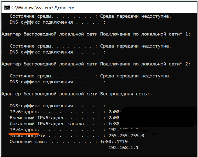 - Внутренний IP-адрес можно узнать только с устройств, подключённых к одной локальной сети. Провести необходимые действия можно через инструменты операционной системы (например, через команду ipconfig в Windows или ifconfig в macOS и Linux).