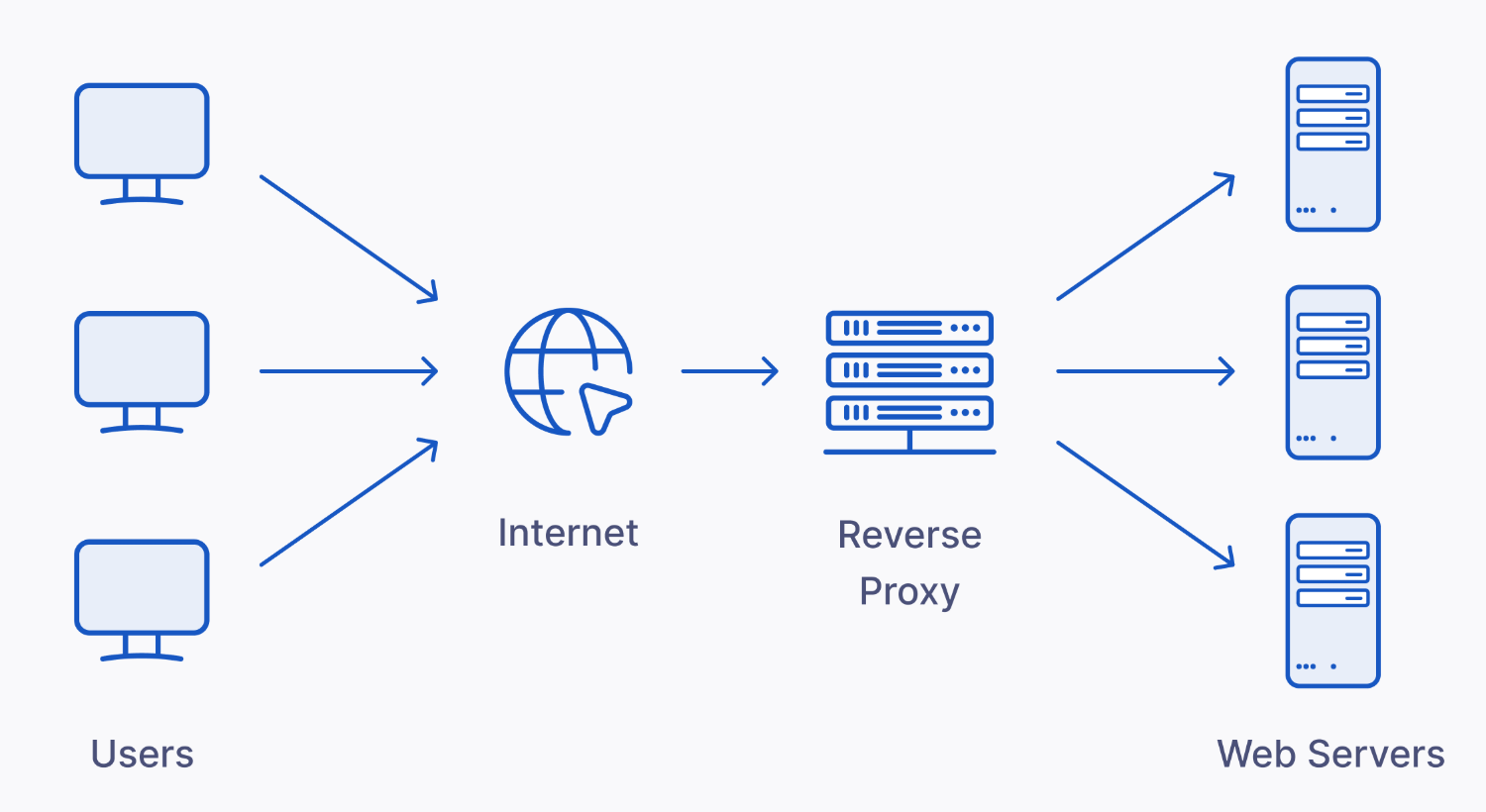 Обратный прокси Клиенты не осознают его существование. Они видят только конечный веб-сайт, а обратный прокси скрывает внутренние серверы.