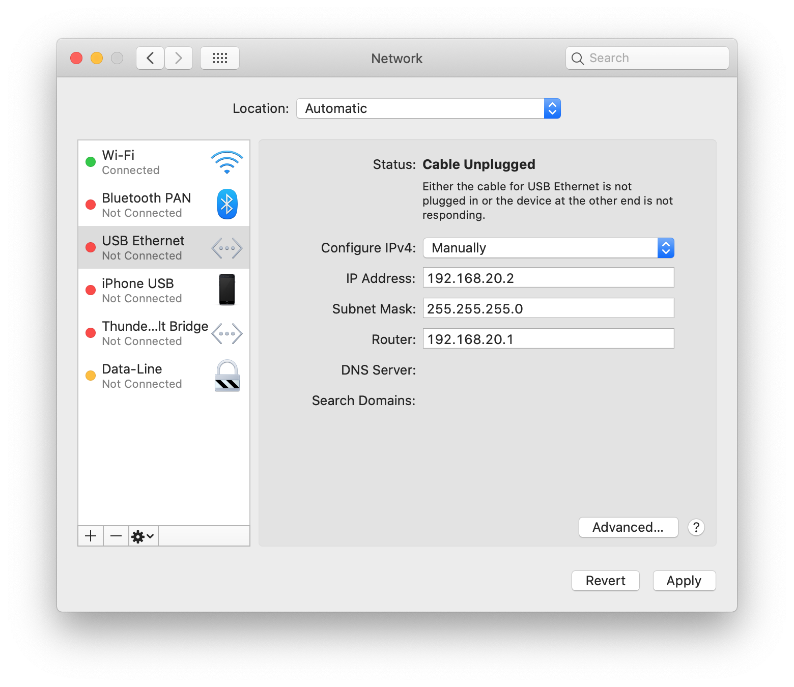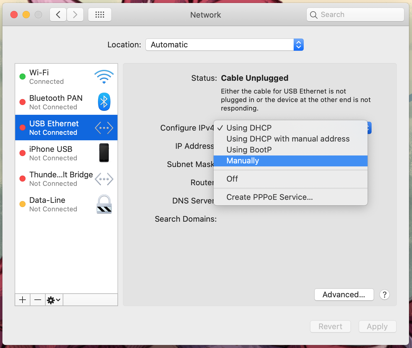 Настройка статического IP в Mac OS