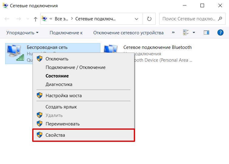 Найдите свой сетевой адаптер, щёлкнув по нему правой кнопкой мыши, и выберите "Свойства".