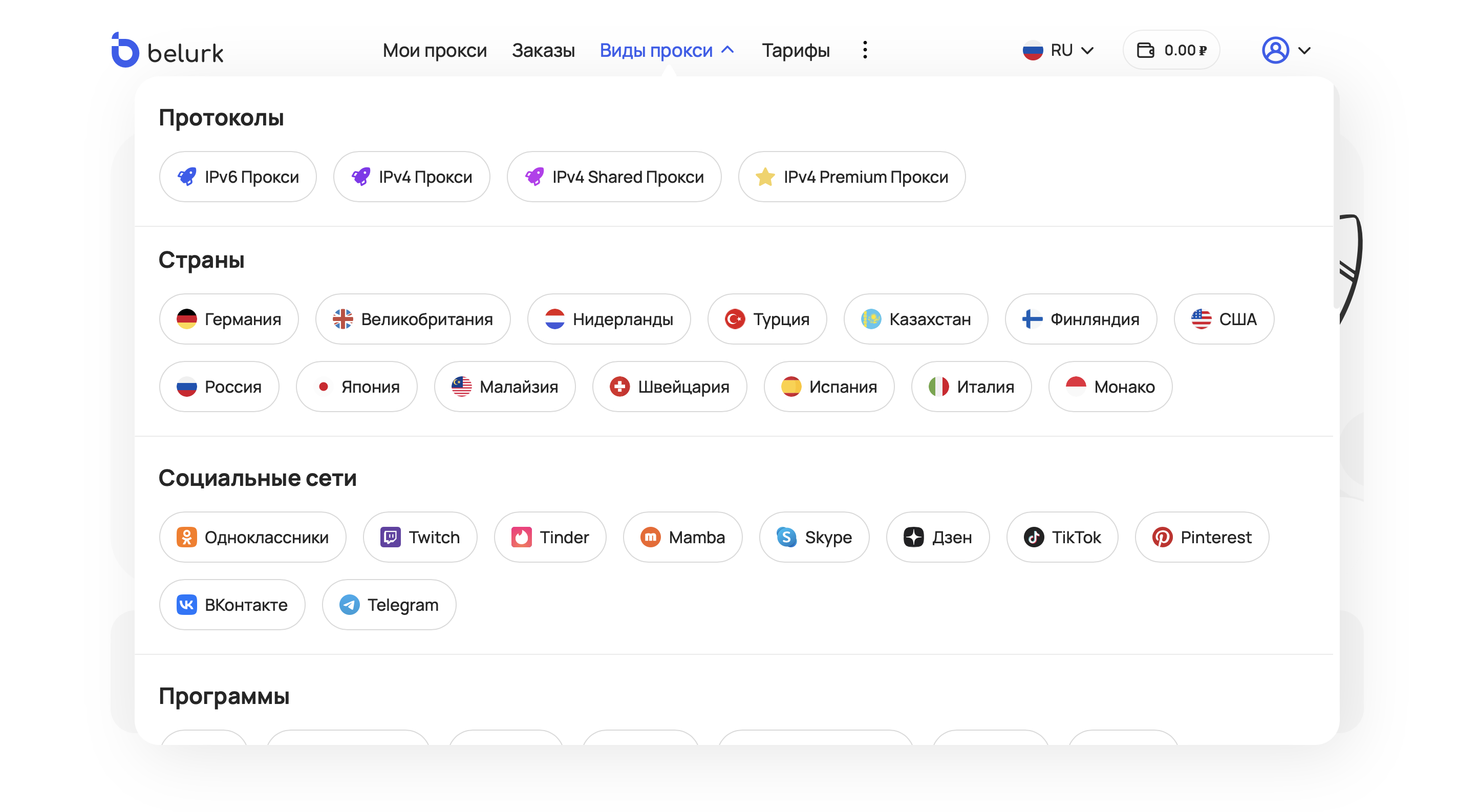 Belurk соответствует перечисленным критериям. С Belurk вы сокращаете время на настройки: готовые геолокации под нужный рынок, автоматическая ротация IP и прозрачная статистика позволяют оперативно видеть, где и почему возникли проблемы, и решать их до того, как это повлияет на бизнес‑метрики. Нужна интеграция с парсером или CRM — API сделают подключение это простым и безопасным.